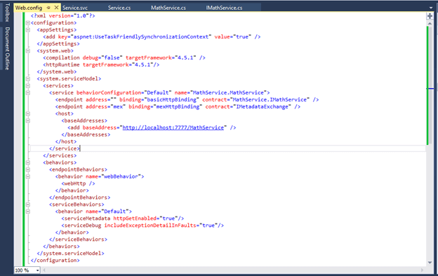 - <service behaviorConfiguration="Default" name="MathService.MathService">
