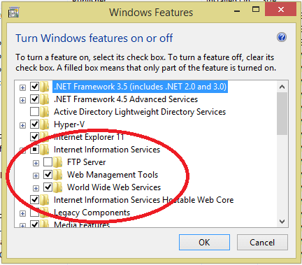 - Open Control Panel =>> Programs and Features =>> Turn Windows features ON or OFF =>> Internet Information Services.