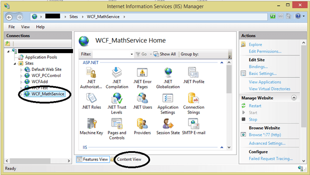 - It will add new website on IIS. Now, select this site and click on ‘Content View’.