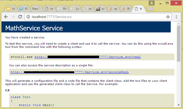 - Now, our Service is successfully hosted on IIS. You can use it by using this URL http://localhost:7777/Service.svc.