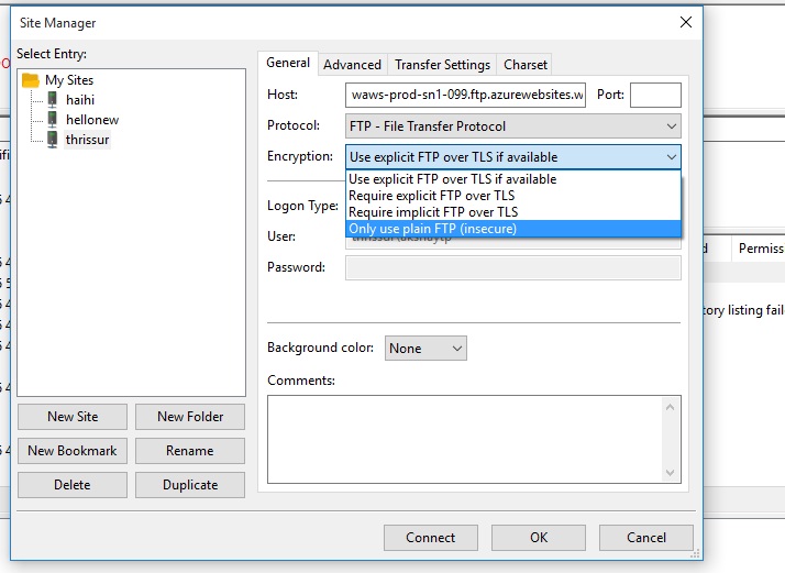 We can use the FTP client Filezilla for website hosting to Azure. And it is an FTP method. And sometimes we may face some errors in it. And the solution is also mentioned in this article.