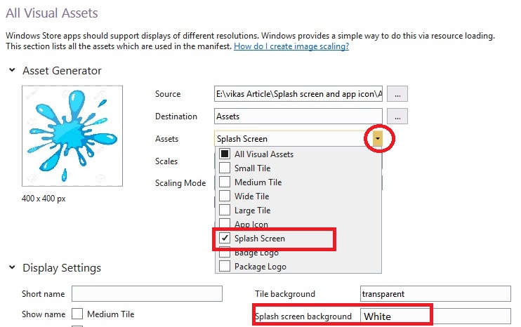 In this step, repeat the Step 3 and select Splash image from file and open. Then, click on Assets and select only Splash Screen. If you want to set the splash screen background, after setting the background, click on the "Generate" button.