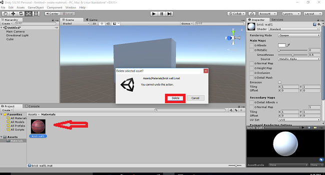 Now delete the brick wall image and double click on the new material. Delete the brick wall material.