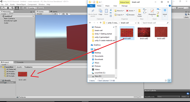 Now, double click on the textures, open the brick wall image, and drag and drop the image into Textures.