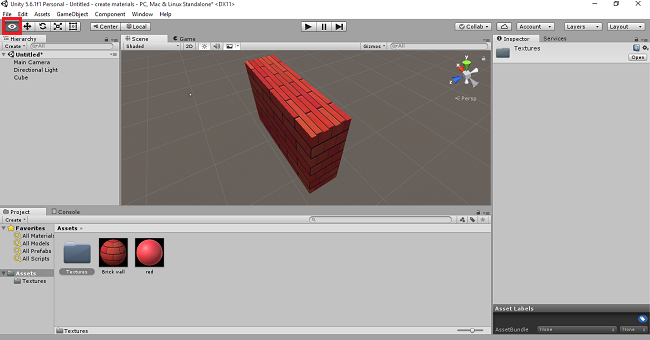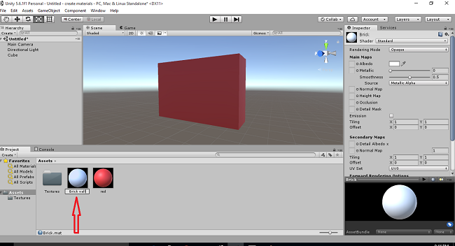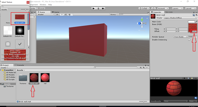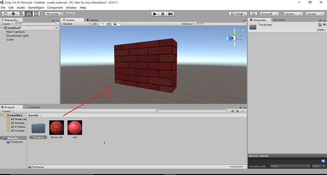 The brick wall image is added into assets. Select the image drag and drop the image into object. The object can be changed fully to a brick wall. Now the new material added into the assets.