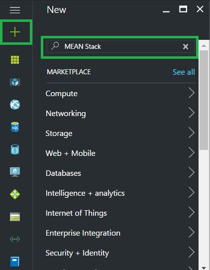 Pre-configured stacks in Azure Marketplace: The Azure Marketplace has many pre-configured Node.js stacks, including Mean.io, Jelastic Hybrid PaaS, and Bitnami MEAN Stack. We can start playing around with these and deploy a fully configured stack on Azure within minutes.