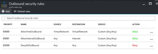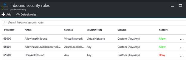 Default Rules within a NSG - By default, the following Rules are activated when you create a Network Security Group.