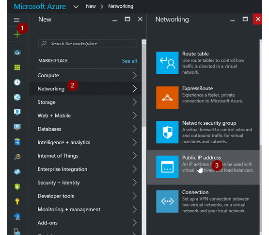 Please follow the below animated image to create an IP Address from the Azure Management Portal.