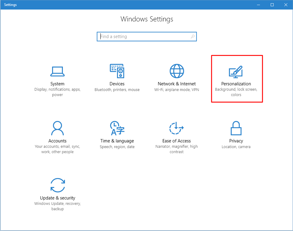 Step 2 - Setting option menu opens. Click or select Personalization icon.