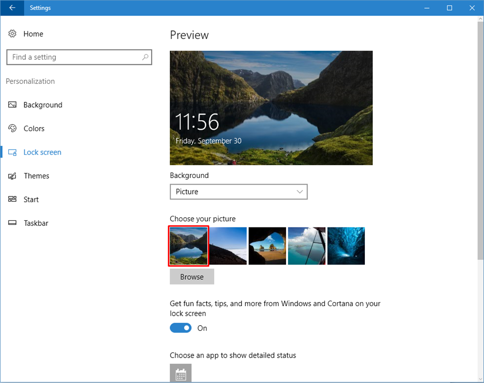 Step 4 - In this step, we have three options, which are listed like Windows Spotlight, slideshow and picture. We can select one of them here and we can select the picture.