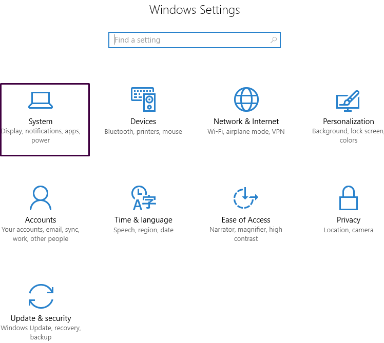 Step 2 – You will reach the Windows Settings page, as shown in the following image. Select "System" over here.