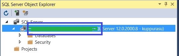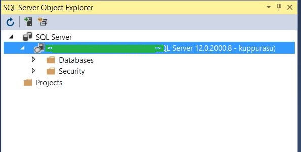 After successfully connecting, the SQL Server Object Explorer window opens with a connection to our database.
