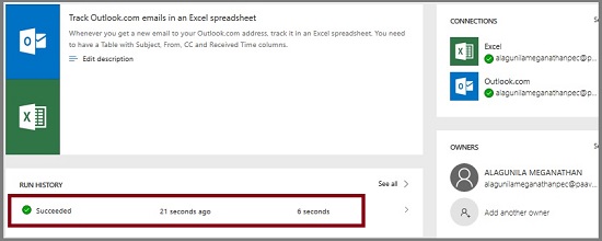 I hope, you understood how to save the Email from Outlook.com to Excel automatically and how to run it. Stay tuned for more Flow articles.