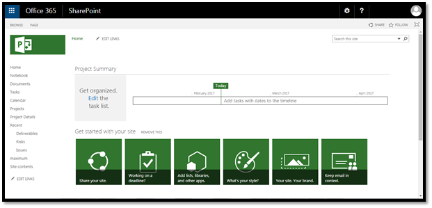 Now, let’s see how to create a new workflow in Office 365 online. Open the site collection from your site, as shown below.