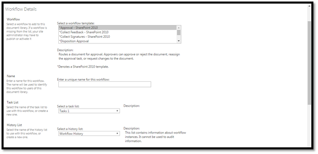 Select a desired workflow template as per your need. In our demo, let us select Approval-SharePoint2010.