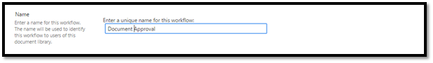 Give a proper SharePoint workflow name. In my case, it is “Document Approval”.