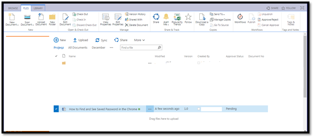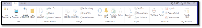 Now, open the document library, select any document, and click on "Files" ribbon as shown below.