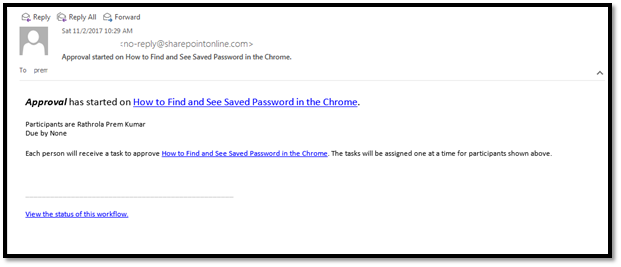 In our next article, I will show how to approve the Workflow with Workflow Visualization.