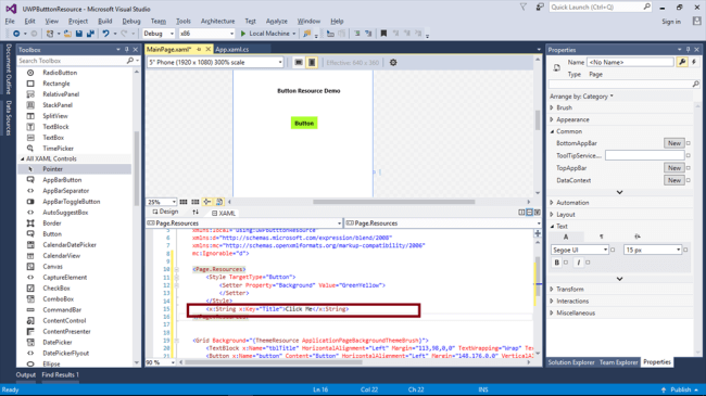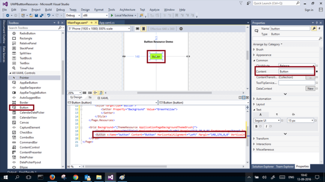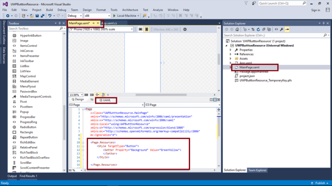 Step 7 - Deploy of your app in local machine and the output of the UWPButtonResource app is given below-