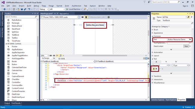 Reading this article, you can learn how to create and use user defined resource to button control in Universal Windows apps development with XAML and Visual C#.