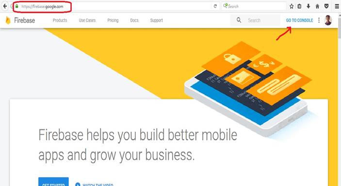 You can easily sign in to Firebase by using your Gmail address. After signing in, at the top right corner, you will see the “go to console” link, just click on that.