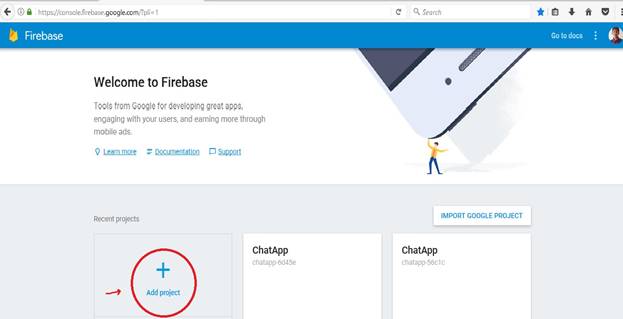 Now, we are at console page. Creating a project in it is the primary step. Through this project, we can control our chat app's sign-in settings and others. But there are some steps for creating a project in it.