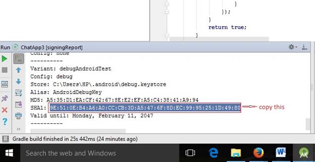 And we can give any nick name to our app. So just fill that box with your app name. Next step is to find the debug sign in certificate SHA1.