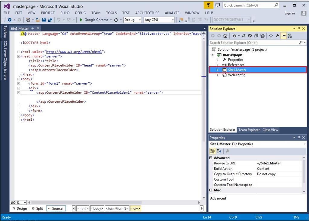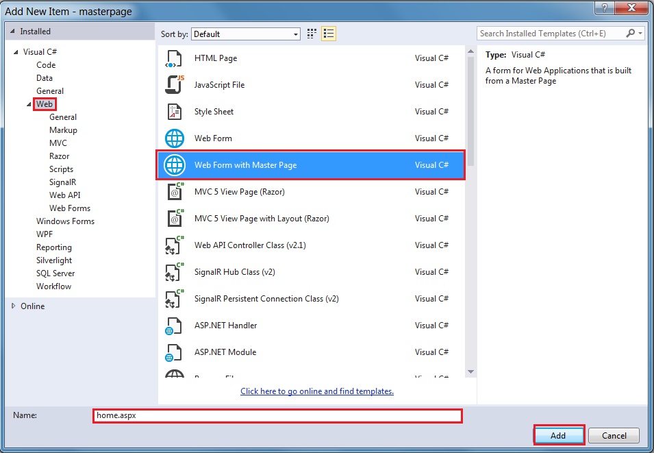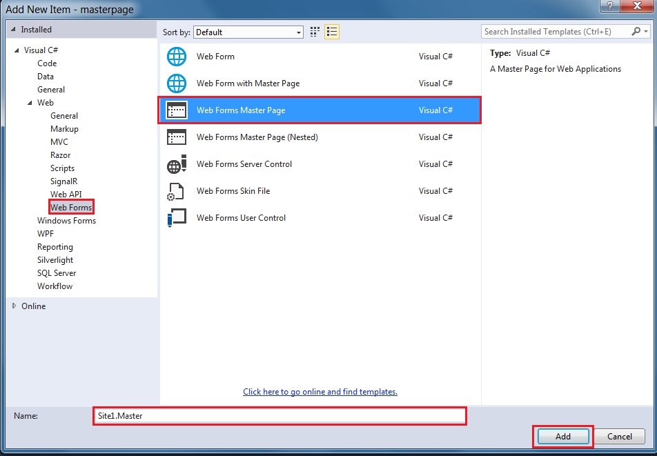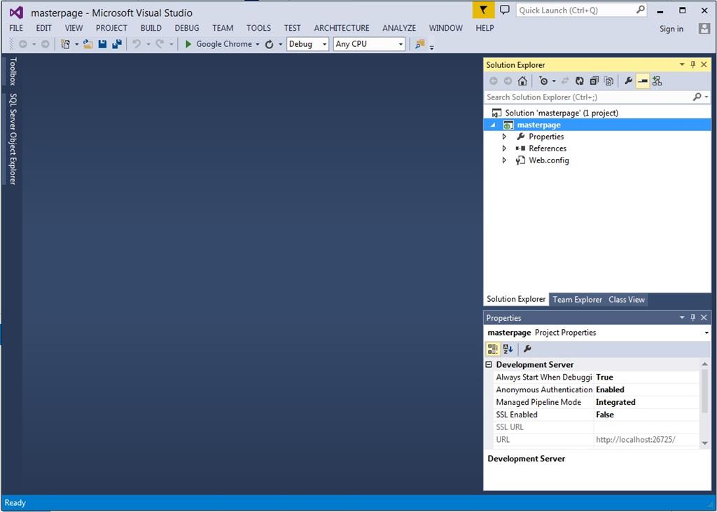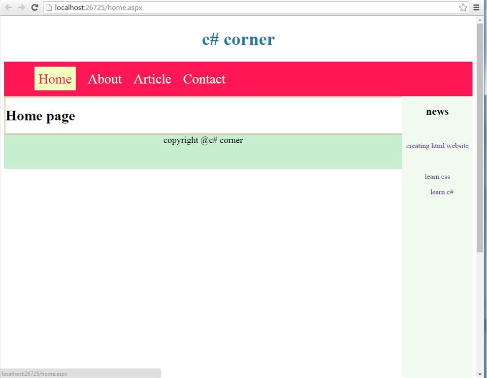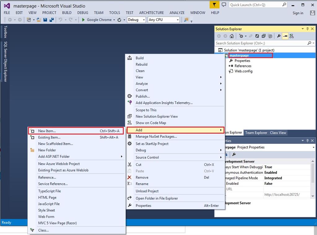 Master page provides the layout and functionality to the other pages. Creating a master page in ASP.NET is very easy. Let's start creating master page step by step.