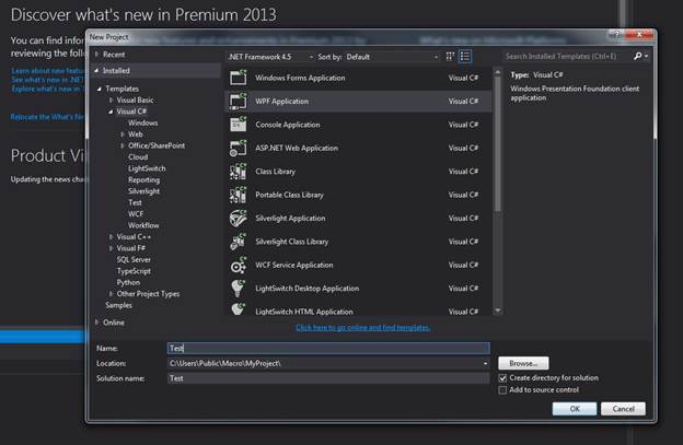 - Create a new WPF Application project. Here, I have created a project named as "Test".
