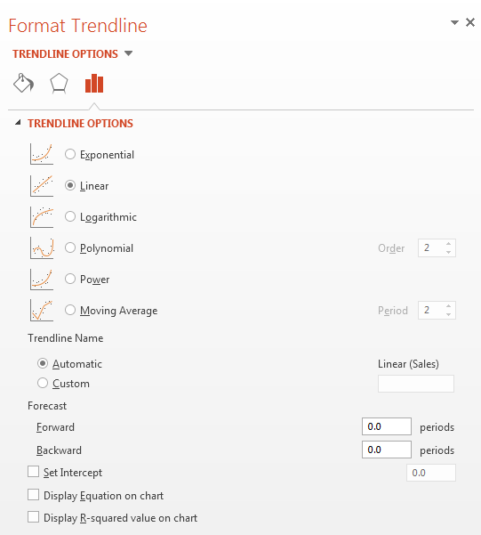 A moving average trendline consists of average data points with the lines. Its data points are decided by the period option we set.