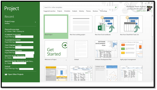 Once we click on OK button, the above screen will appear on our machine. For now, select the "Blank Project" and proceed to create new schedule for your project.