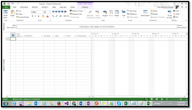 But when you change Task mode to automatic and apply it on all the tasks, then there you can see that all the tasks get filled with start and finish dates automatically.