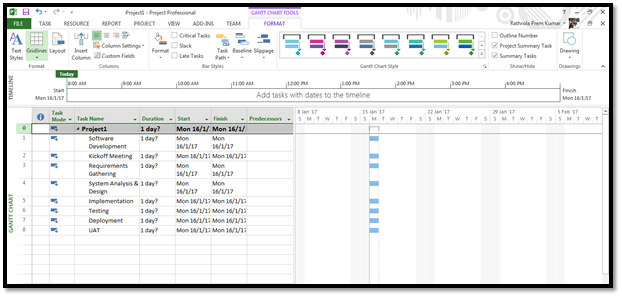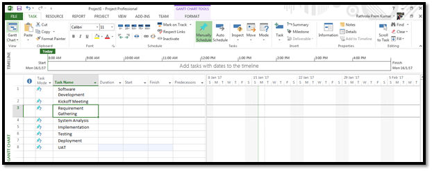 I just took some activities to create the projects. Now, type all the activities in Microsoft Project, as shown below.