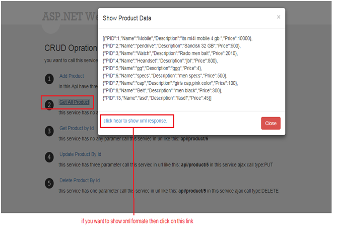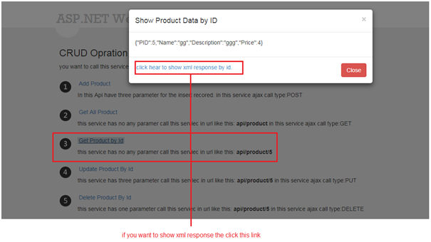 - <div class="modal-footer"> <a style="float: left; color: #3791cc" href="api/product/5">click hear to show xml response by id.</a> <button type="button" class="btn btn-danger" data-dismiss="modal">Close</button> </div>
