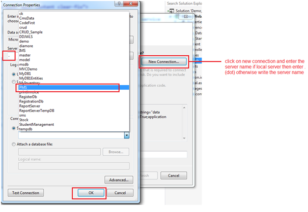 Click on the next button, click on new connection and enter the server name; if local server then enter (Dot) otherwise write the server name