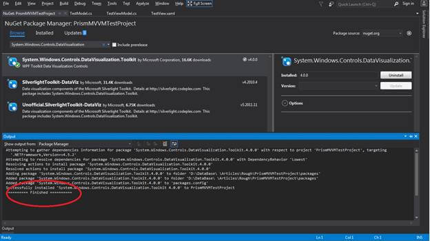 Before starting, I hope you have added ‘Prism.Unity’ from ‘NuGet Packages’ and for charting, we will do the same using the charting controls package.