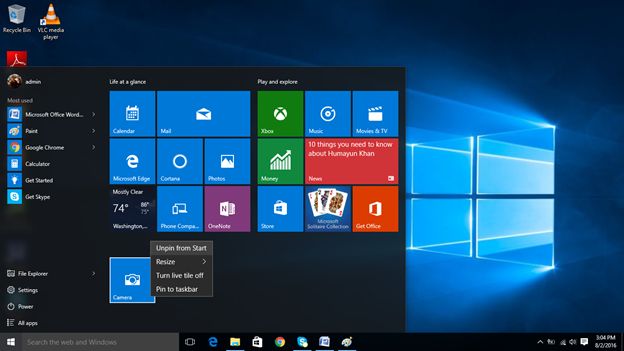 - Now, if you want to unpin the camera app from Start Menu, you can right-click on the camera tile and select Unpin from Start.