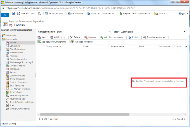 - Solution was created as blank “No Solution Component “.