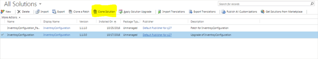 Now, our Hotfix is ready. After testing it, we go for the new option, i.e. Clone Solution.