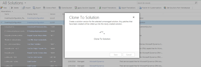 - There were two solutions, one is parent and the other is patch. But after we click on the Save button of Clone Solution popup window, both of them merge in one.