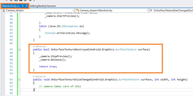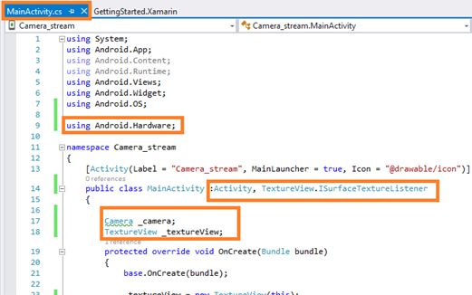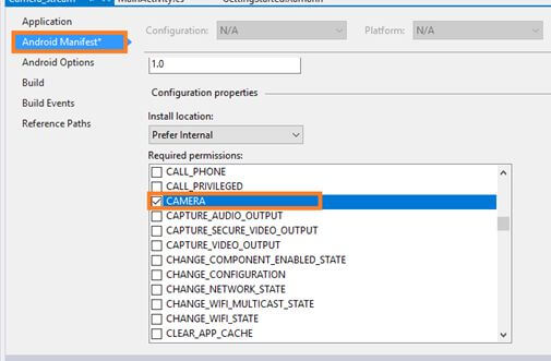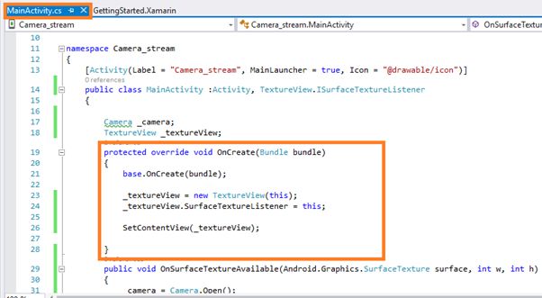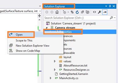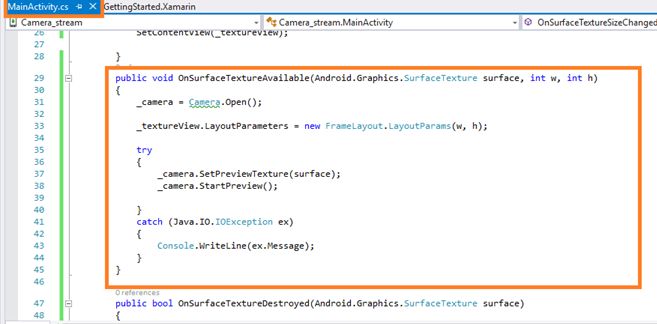 The steps, given below, are required to be followed in order to Display a stream from the camera Using a TextureView in the Xamarin Android app, using Visual Studio 2015.