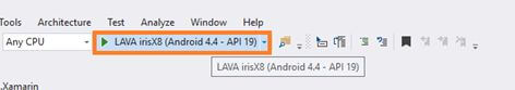 If you have Android Virtual device, run the app on it. Otherwise, connect your Android phone and run the app in that. Simply, connect your phone and go to Visual Studio. The connected phone will show up in the Run menu (Ex:LENOVO A6020a40(Android 5.1-API 22)). Click the Run option.