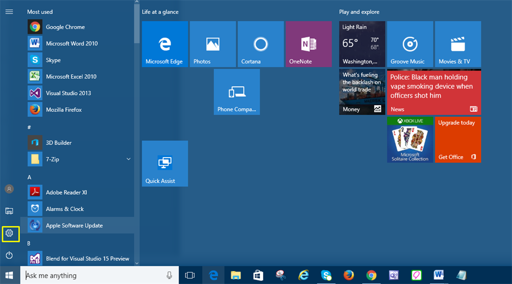 Step 1 - In this step, you can select the settings icon on the start menu.