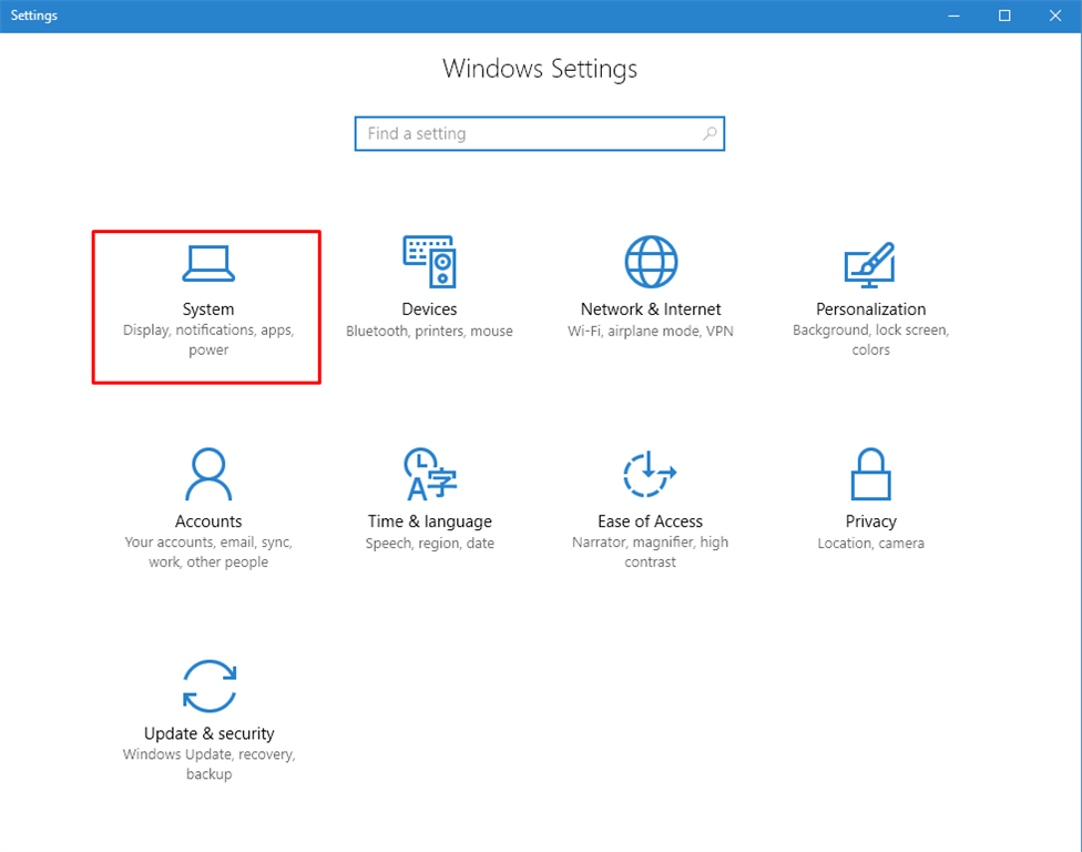 Step 2 - When you click the settings icon, Windows settings open and click system icon.