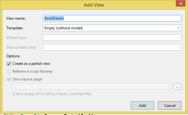 ->Now I am creating view to display of the partial view one by one so for that just right and select partial view in check box, like this
