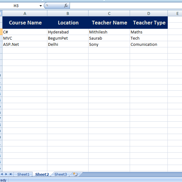 Now when I click the download button all the records should be downloaded in excel format so again remember here I am downloading bookdetails in sheet1 and course details and teacher details in sheet2 in Excel file