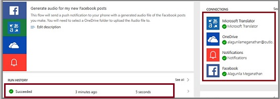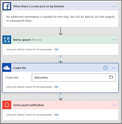 How to create a Microsoft Flow for convert the Facebook post into audio