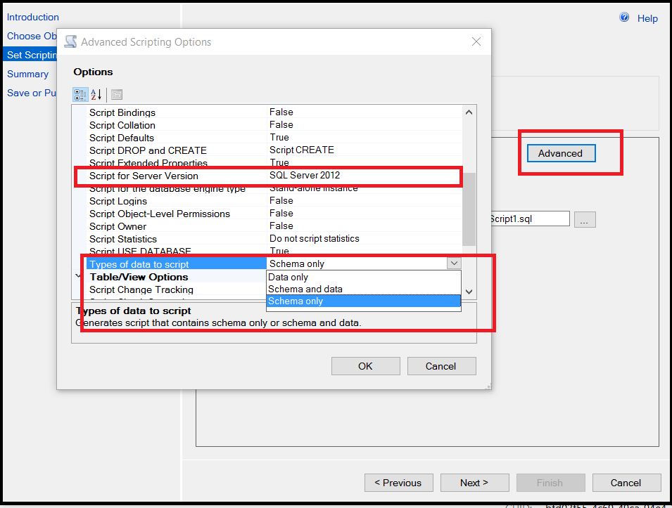 - Generate Scripts and save or publish