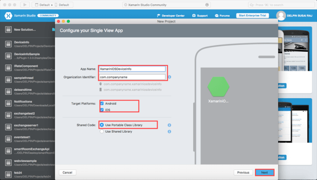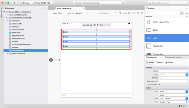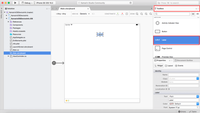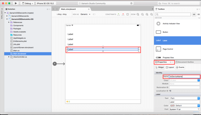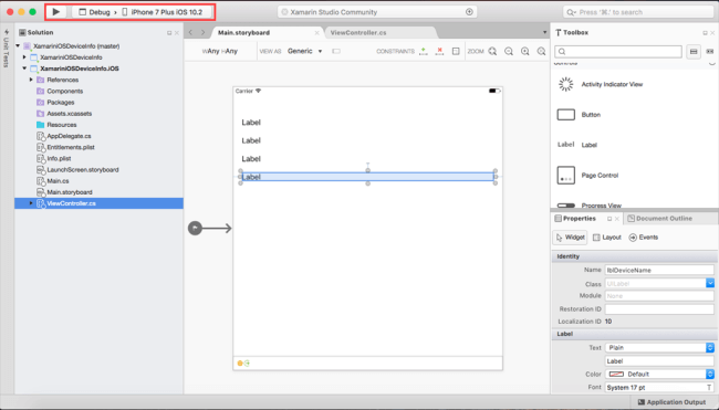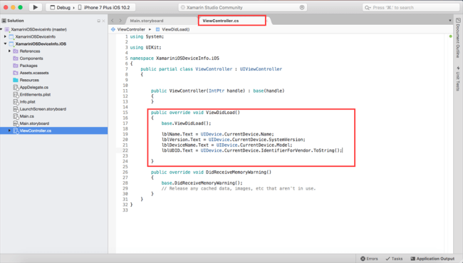 The steps given below are required to be followed in order to get the device information (UDID, Model, Name, OS Version) in Xamarin iOS, using Xamarin Studio.
