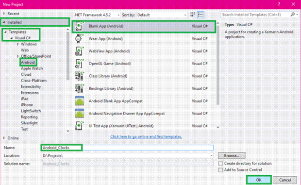 The steps, given below are required to be followed in order to get the time, using clocks in the Xamarin Android app, using Visual Studio 2015.